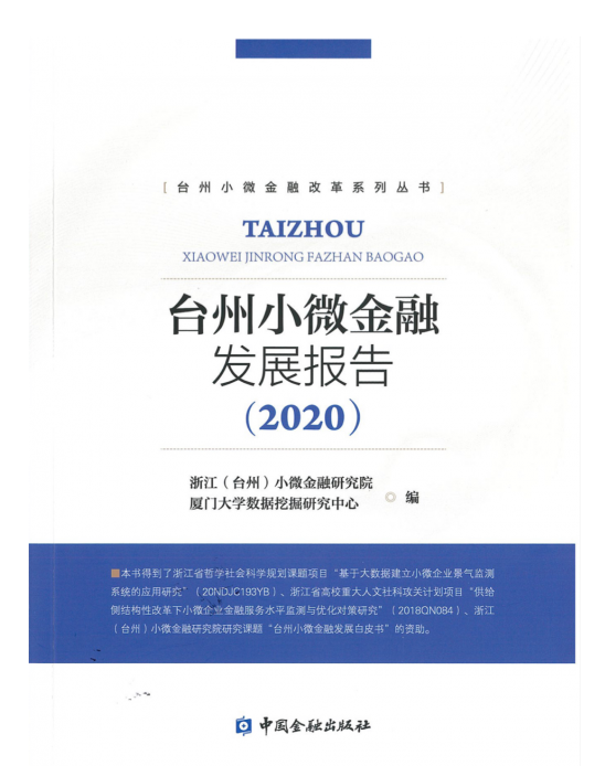 由课题组方匡南教授和张庆昭副教授联合浙江(台州)小微金融研究院共同编写的《台州小微金融发展报告(2020)》正式由中国金融出版社出版。