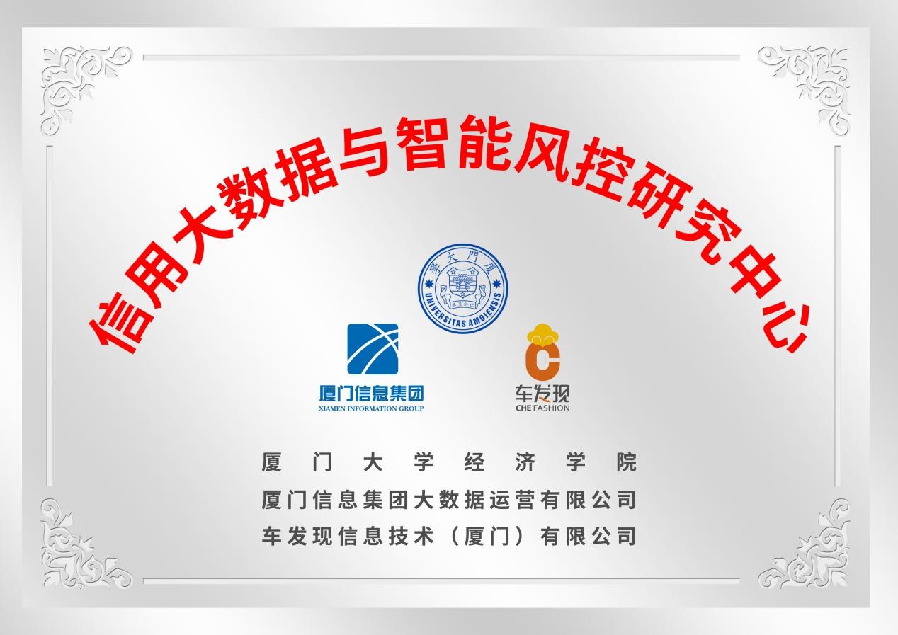 目前研究中心牌匾已分别挂置于厦门大学经济学院、厦门信息集团大数据运营有限公司和车发现公司。未来,三方将充分发挥各自的优势,整合各自优势资源,增强金融服务创新能力,提高科研成果转化率,将科研创新、数据资源开发与金融服务相结合,成为产、学、研技术创新的重要基地。
